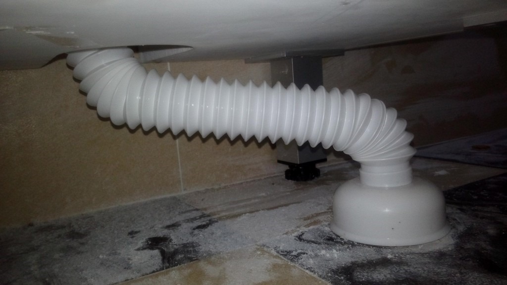 而且还把排水管尾部减掉了一部分,然后直接塞到地面的排水管上了。。。