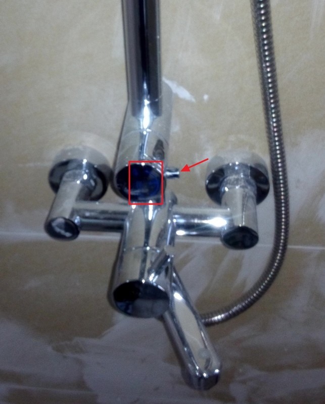 经过梁师傅,把三出水的调解的那个小把手,旋动可以拆掉,然后用送的内六角直角螺丝刀去重新给里面的东西,顺时针转个90度,就调解好了。