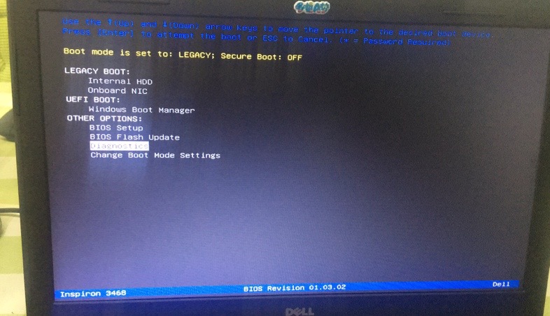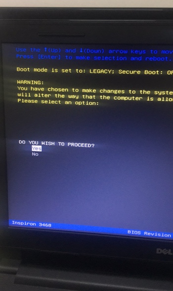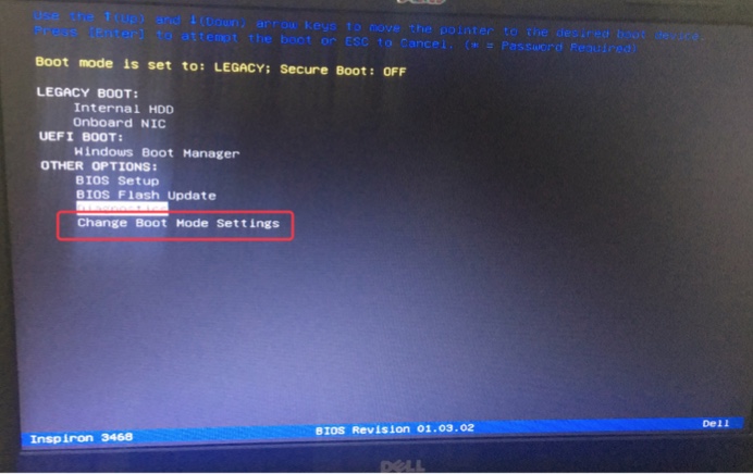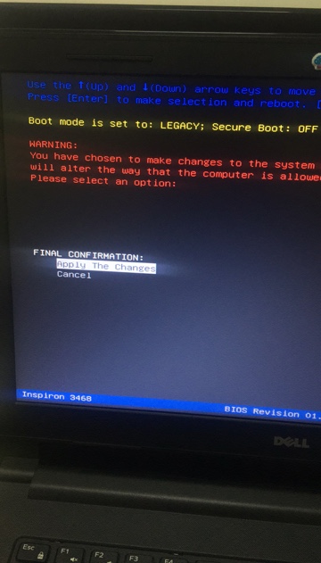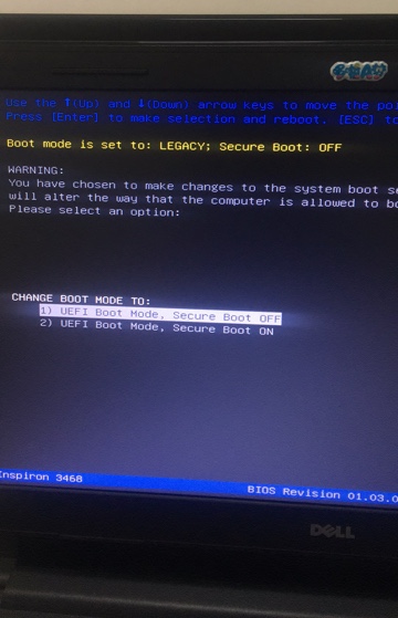 重启电脑时按F12,进入选项-》OTHER OPTION -》Change Boot Mode Settings -〉Change Boot Mode to-》选择:1)UEFI Boot Mode,Secure Boot OFF -》Do YOU WISH To PROCEED-〉选择YES-》Final Confirmation-〉选择 Apply the changes,重启系统,就可以了。