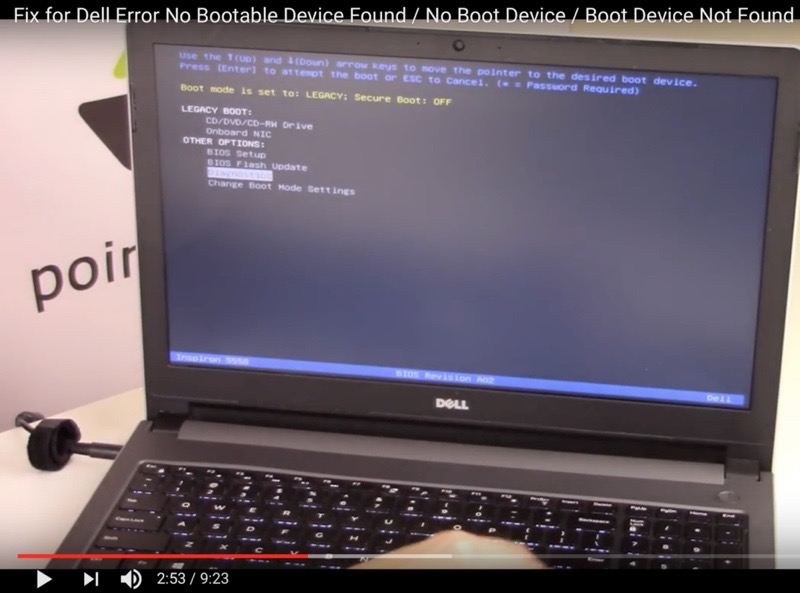 Fix for Dell Error No Bootable Device Found / No Boot Device / Boot Device Not Found – YouTube