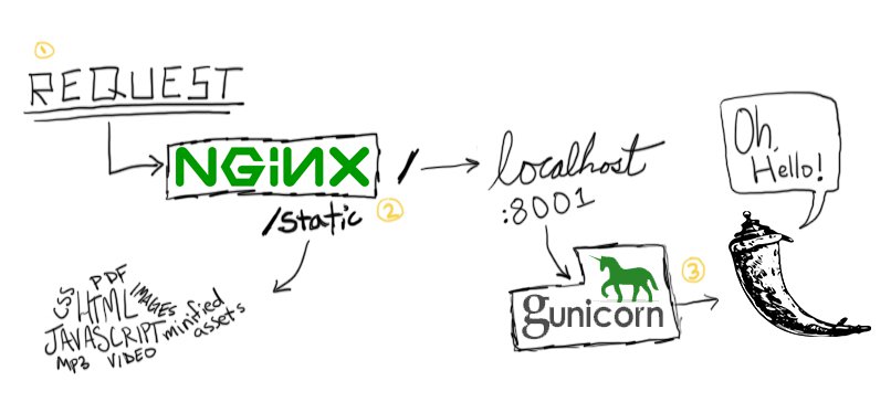 nginx 的作用就是弥补以上问题,首先作为前端服务器它可以处理一切静态文件请求,此时 gunicorn 作为后端服务器,nginx 将会把动态请求转发给后端服务器,因此我们可以起多个 gunicorn 进程,然后让 nginx 作均衡负载转发请求给多个 gunicorn 进程从而提升服务器处理效率与处理能力。最后,nginx 还可以配置很多安全相关、认证相关等很多处理,可以让你的网站更专注业务的编写,把一些转发规则等其它业务无关的事情交给 nginx 做。