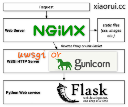 而web服务器是没法直接和Python(的Flask)通信的,所以需要借助于:gunicorn
