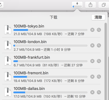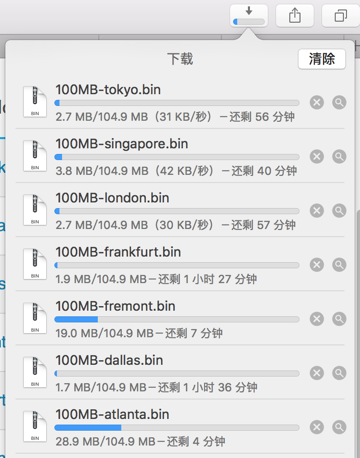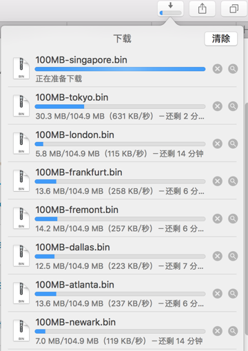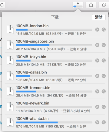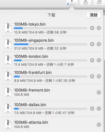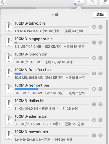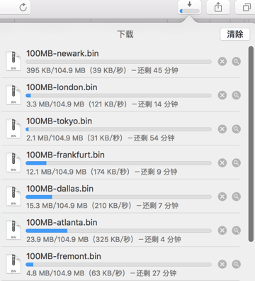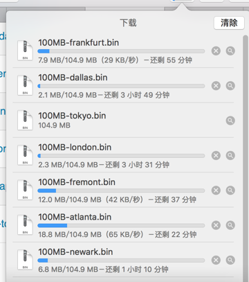 atlanta > dallas > Frankfurt :基本在200KB左右