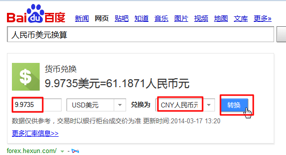 同理,选择被换算成USD美元,然后点击转换,即可算出: