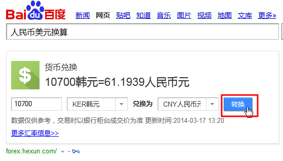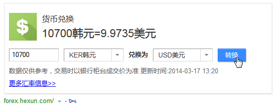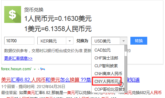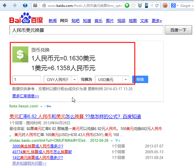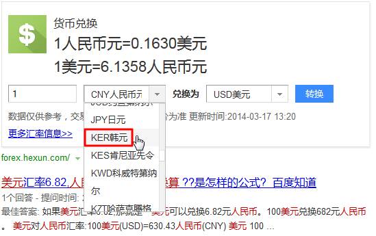 百度的这个集成的汇率换算的小工具,还是蛮方便好用的。