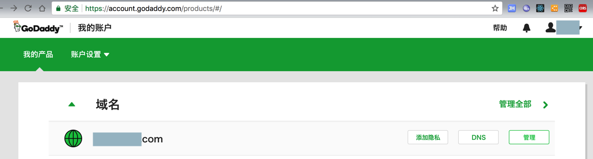 然后去godaddy中看看: