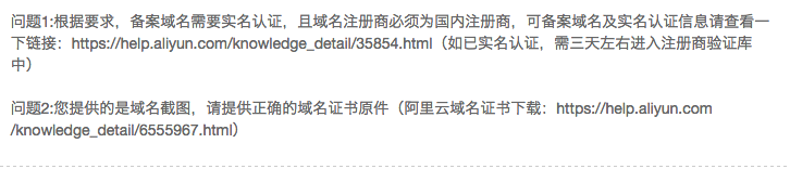 问题2:您提供的是域名截图,请提供正确的域名证书原件(阿里云域名证书下载:https://help.aliyun.com/knowledge_detail/6555967.html)