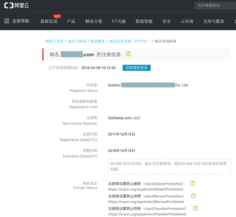 关于域名 xxx.com  的whois信息及网站信息-阿里云