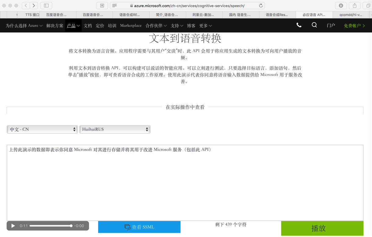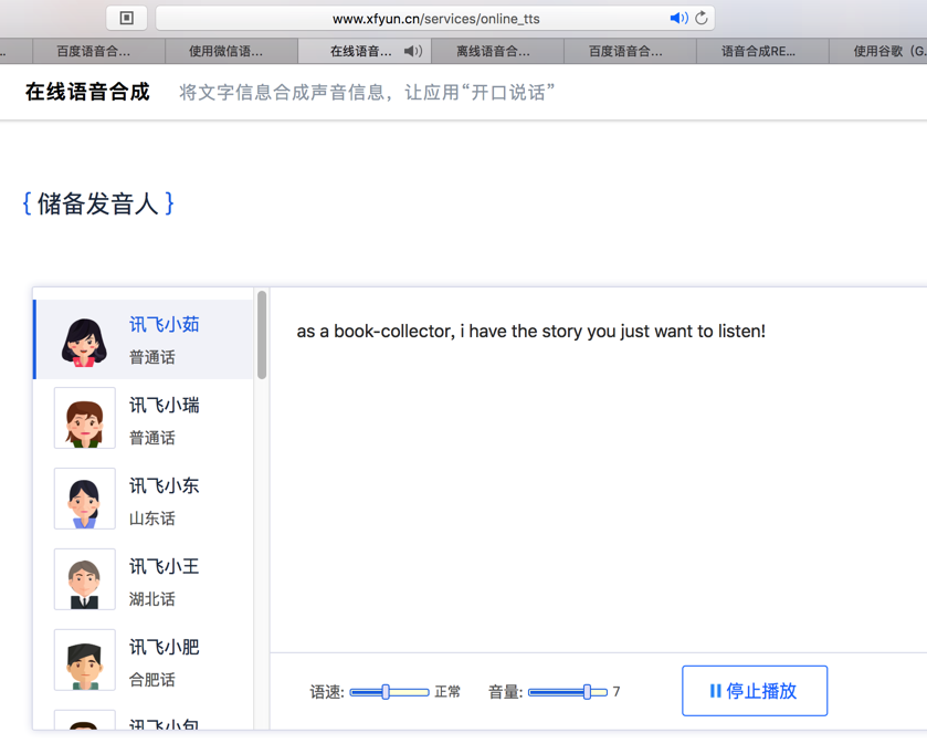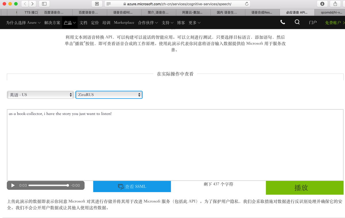 后来换用语音和声调更加标准的微软Azure的语音服务了: