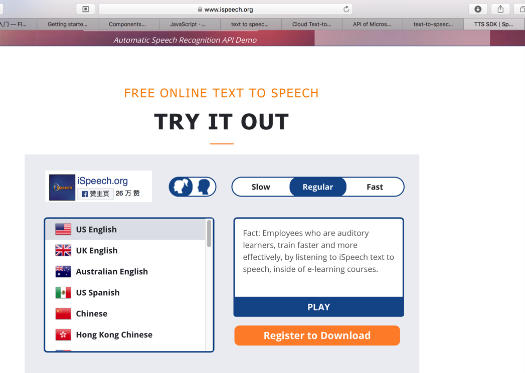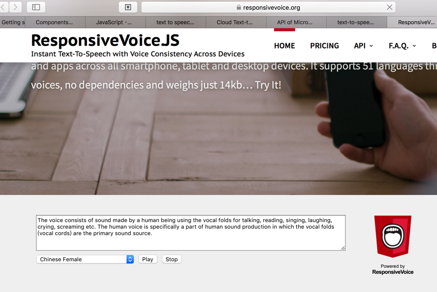 估计前面的ResponsiveVoice.JS就是用HTML5的这个Speech Synthesis API
