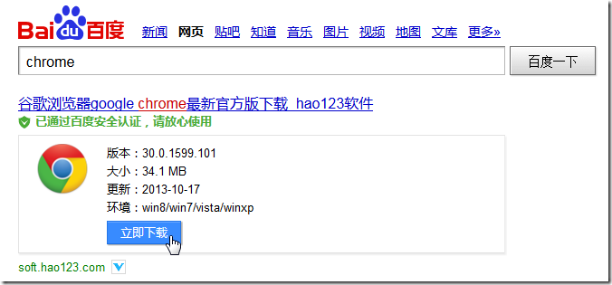 搞得竟然还是通过百度的搜索,找到(已被百度收购的hao123里面提供的)离线版的chrome。