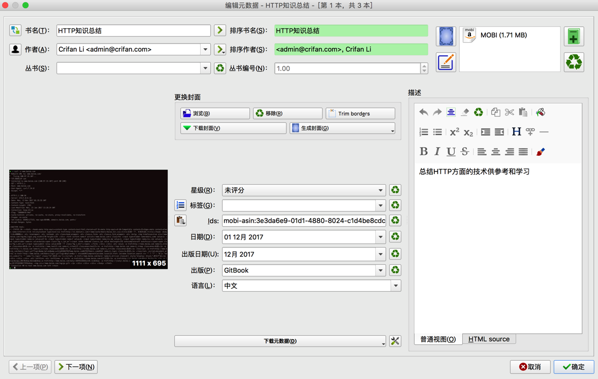 对于Mobi等Ebook的封面有误,也可以自己去编辑的: