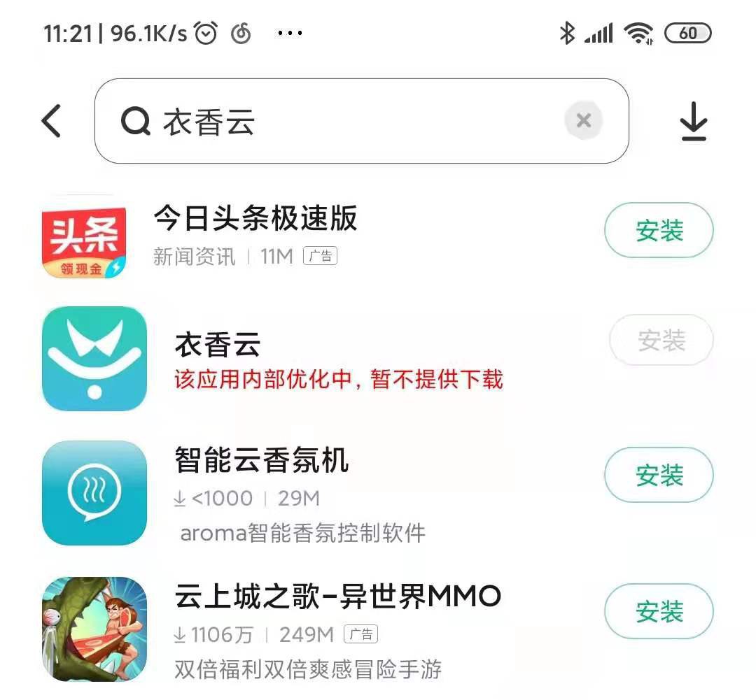 打算去试试:衣香云先去小米手机的应用市场中下载,结果看到提示是:该应用内部优化中,暂不提供下载去手机浏览器中搜到:官网:衣香云,你身边的干洗专家http://www.yixiangyun.cn/然后去下载点击 for Android点击 其他方式下载(如果点击 安全下载,则会 通过 应用宝 去下载)然后去安装:升级版本:下载后升级到新版:3.2.2安装完毕:转载请注明:在路上 » 【记录】下载和安装洗衣app:衣香云 Post Views: 3,164