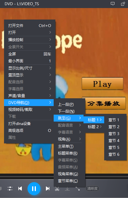 然后用暴风影音去直接播放DVD,结果右键也找不到字幕: