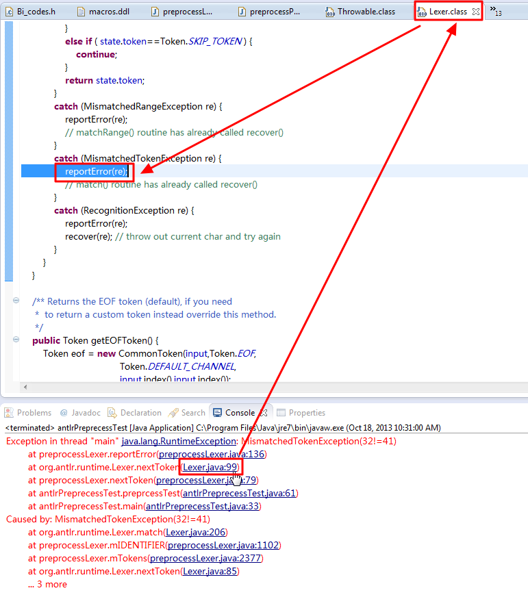 最终实现了,点击对应的异常错误,可以打开对应的class所对应的java源代码并且定位到对应的位置了: