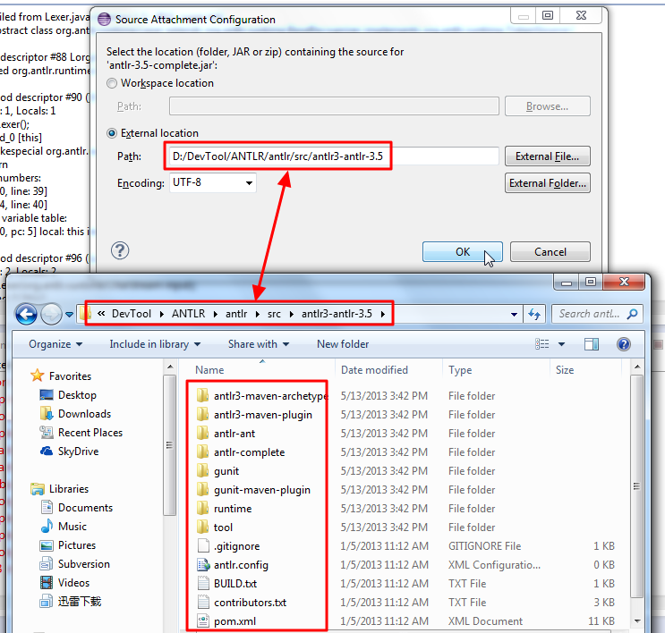 中,真正的包含了,对应的此处的antlr的相关的所有的源码: