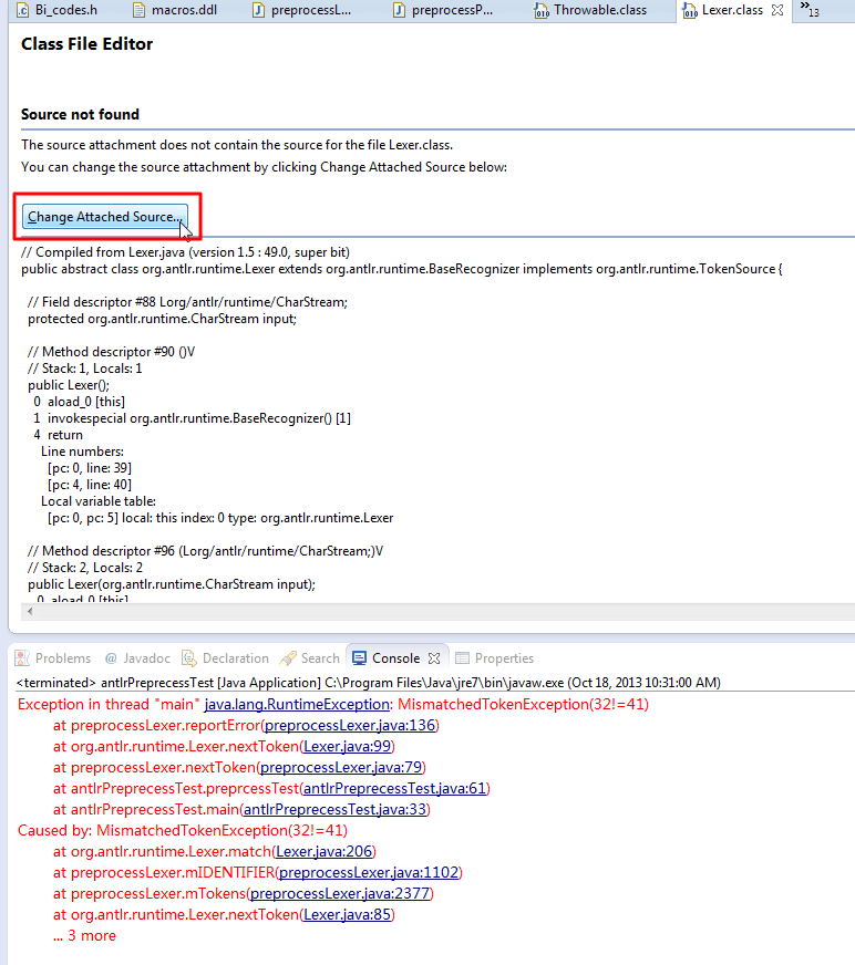 想要去对于antlr预处理文件出现异常时去调试,结果无法进行源码级调试: