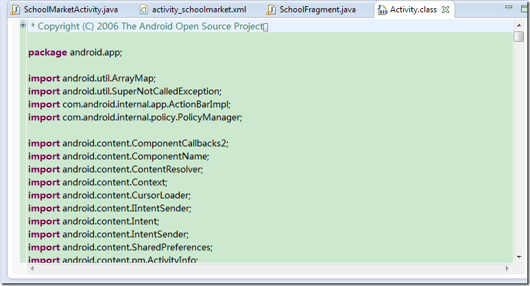 然后稍等片刻,即可自动加载对应的Activity.class所对应的源码了: