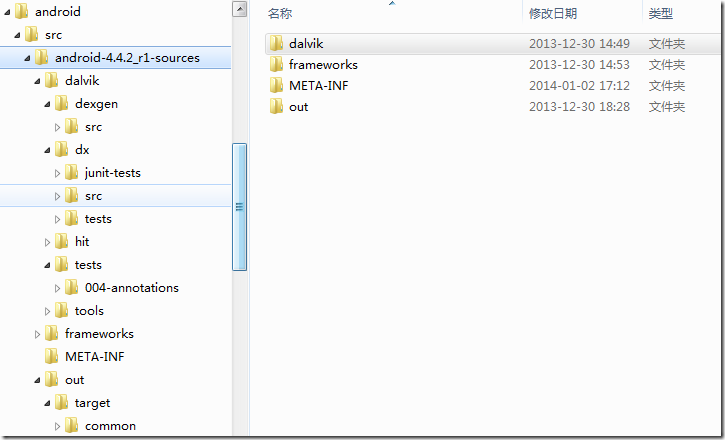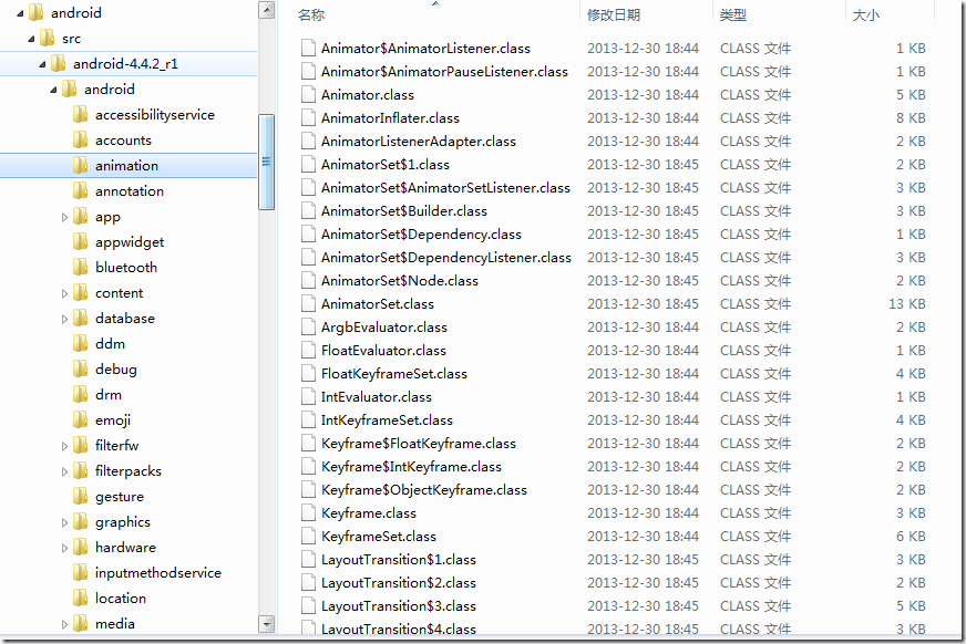 解压sources-19_r02.zip后,会得到包含了对应(android-19,即android 4.4.2版本的)文件夹:
