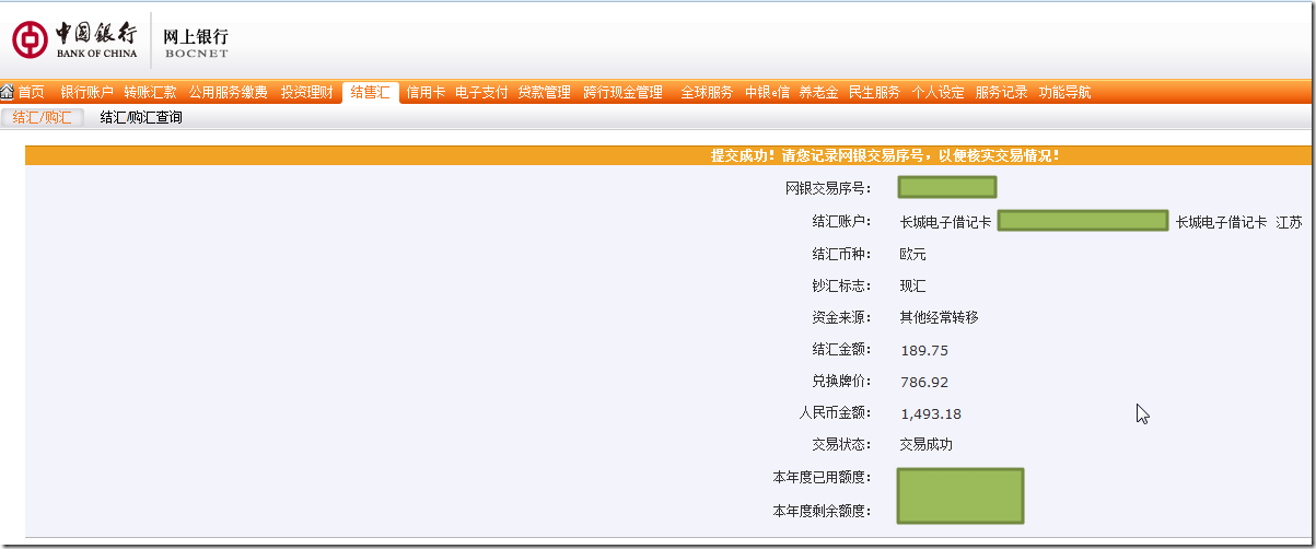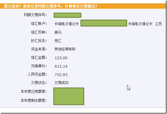 接下来,就是等了,看看能否到账到中行的卡上。