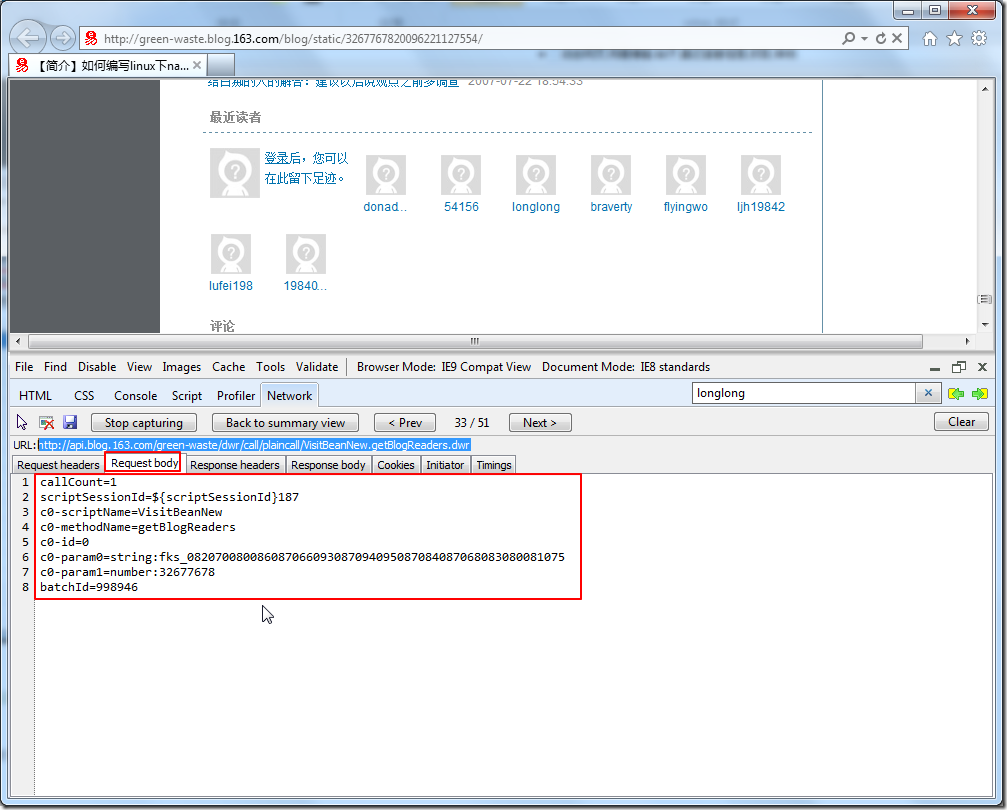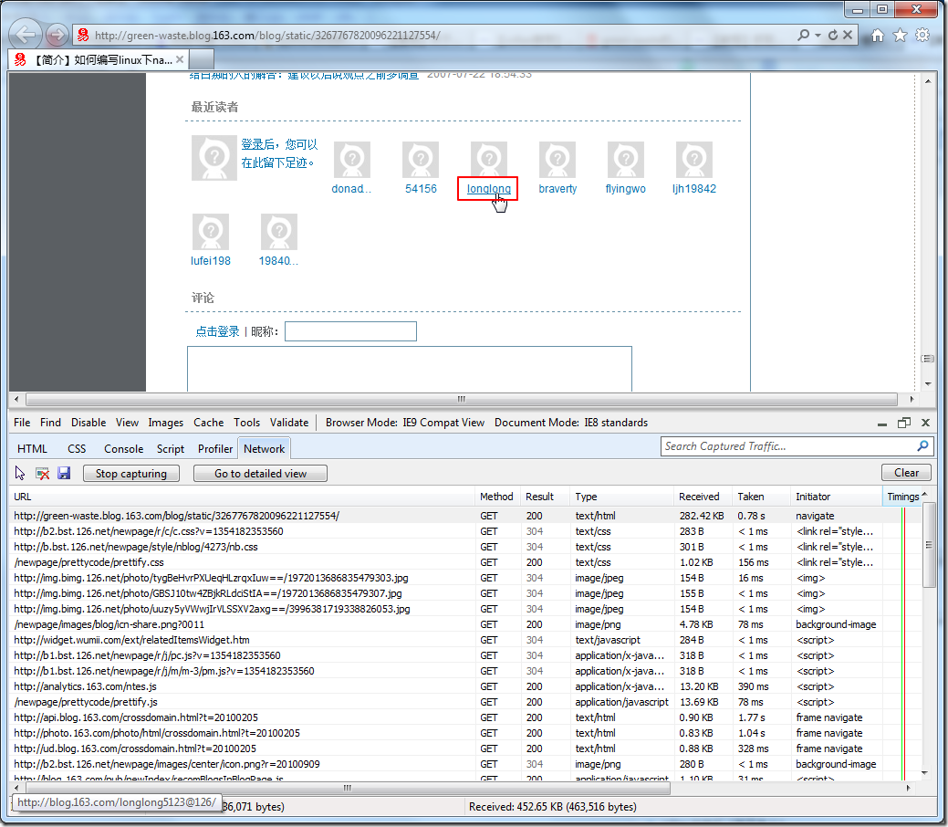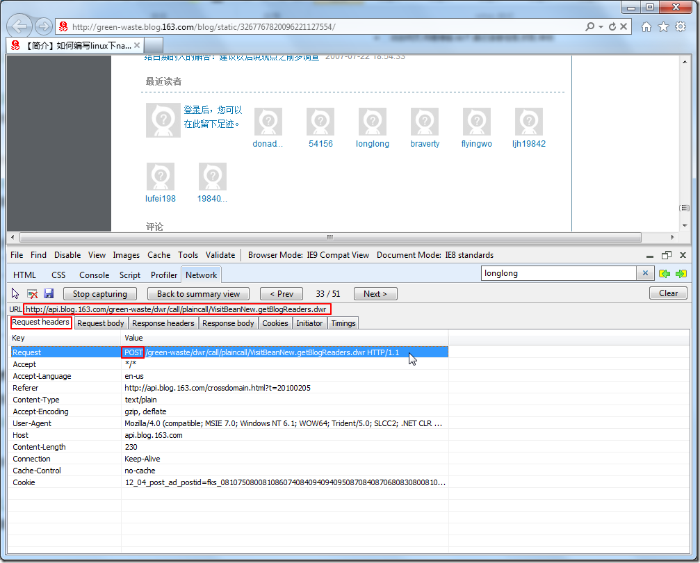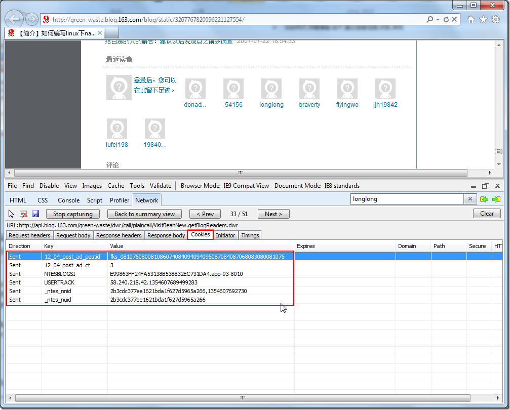 通过工具分析网易博客帖子中的最近读者信息这个数据是从哪里来的