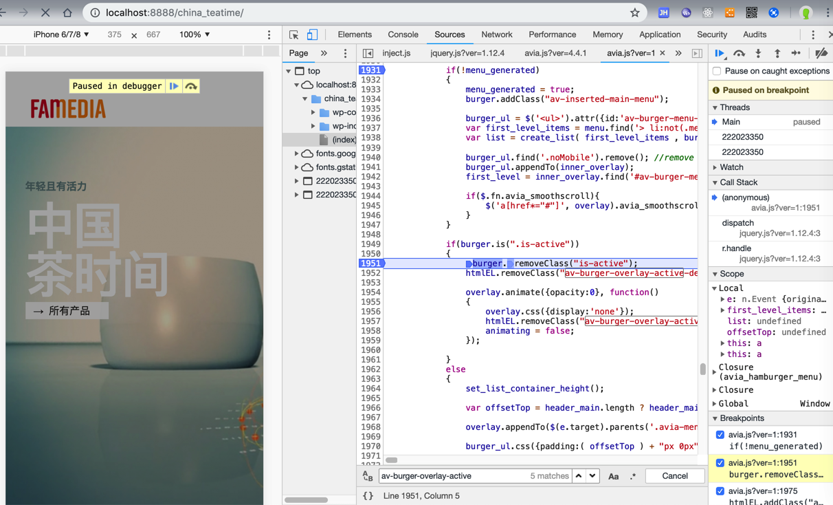 htmlEL.removeClass("av-burger-overlay-active-delayed");竟然真的被执行到了: