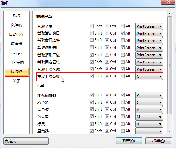 然后,就发现,原来PicPick本身就是有个“重复上次截取”,直接可以实现此需求的: