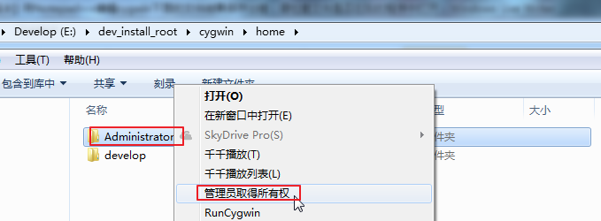 Win7的资源管理器中,右键,cygwin中那些没有操作权限的文件所在的文件夹