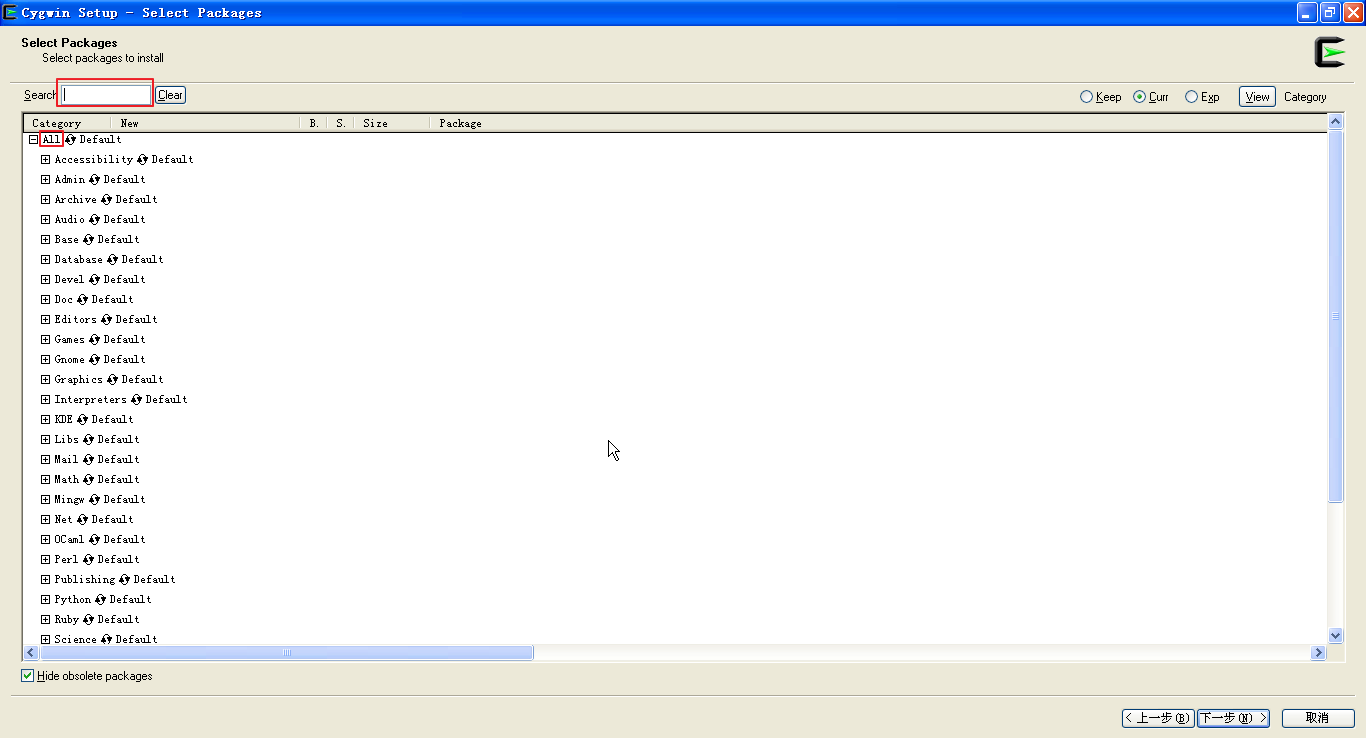 关于具体的安装过程,请参考第 2.2 节 “Cygwin在线安装指南”