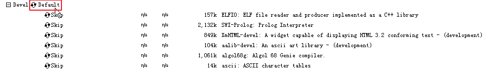 对此,cygwin早就想好了,给我们提供了更方便的设置,那就是,对于此Devel分类下面的所有的模块,如果你想要都安装,那么可以点击Devel后面的那个Default: