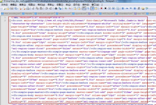 调试无缩进的(xml格式的)fo文件. 但是,当你去用Notepad++打开fo文件的话,所看到的内容是这样的: