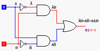 此处,不去深入介绍关于这类设备的真值表(Truth Table)和图形化表示。我们仍然把更多精力放在此句的进一步的语言表述上:“A取反和B,或者是A和B取反”。