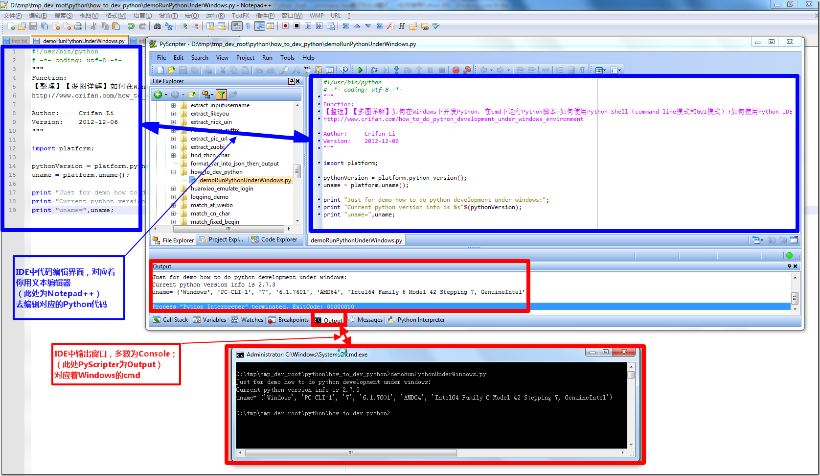 针对初学者,我个人倒是建议使用第一种,即windows的cmd下,去运行python脚本