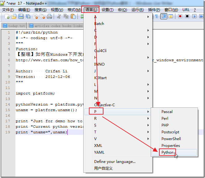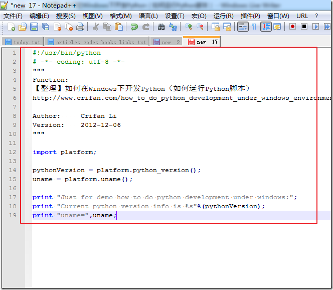 我们所常见的,多数的Python脚本,都是此形式的。而关于Python脚本,其实就是一个文本文件,你可以用任何一个文本编辑器,比如windows的Notepad.exe来打开对应的后缀名为.py的文件,比如我所发布的,用于博客搬家到wordpress的Python脚本BlogsToWordpress.py
