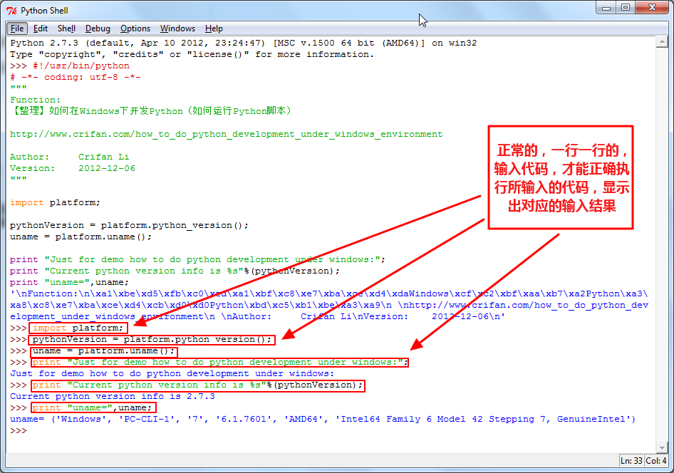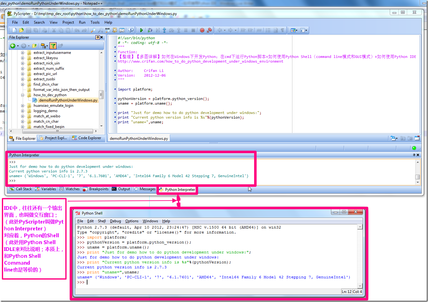 希望对于,如何在Windows下,写Python代码,进行Python开发,运行Python脚本的人,看了此部分内容后,懂得了: