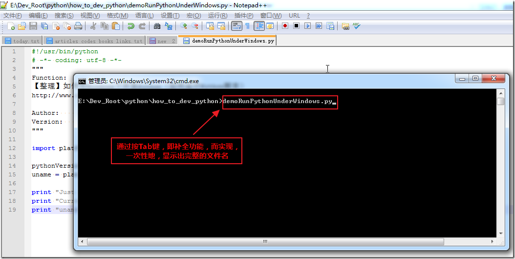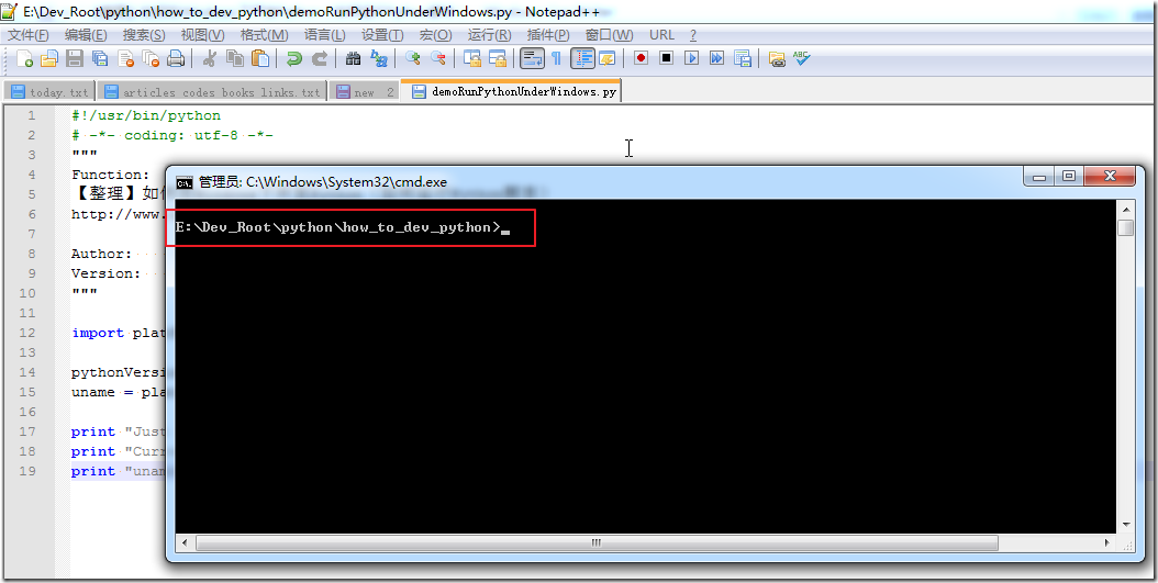如果都是基于前面介绍的,用Notepad++等编辑器去编辑Python代码,写完代码了,再切换到windows的cmd中去运行,