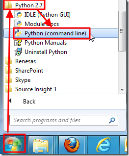 Windows下,安装好Python后,你可以在开始菜单中,找到对应的command line版本的Python Shell的: