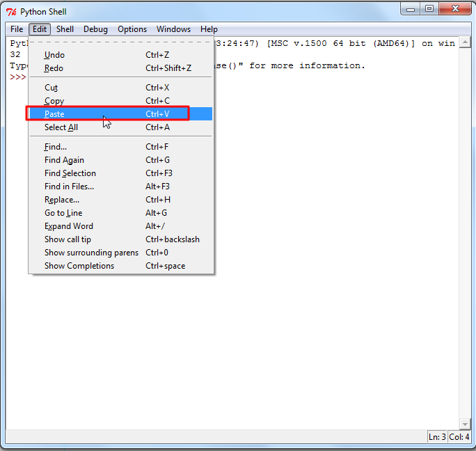 IDLE中一次性粘贴多行代码再运行则会出错 | |||