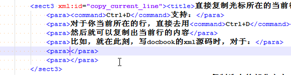 比如,就在此刻,写docbook的xml源码时,对于: