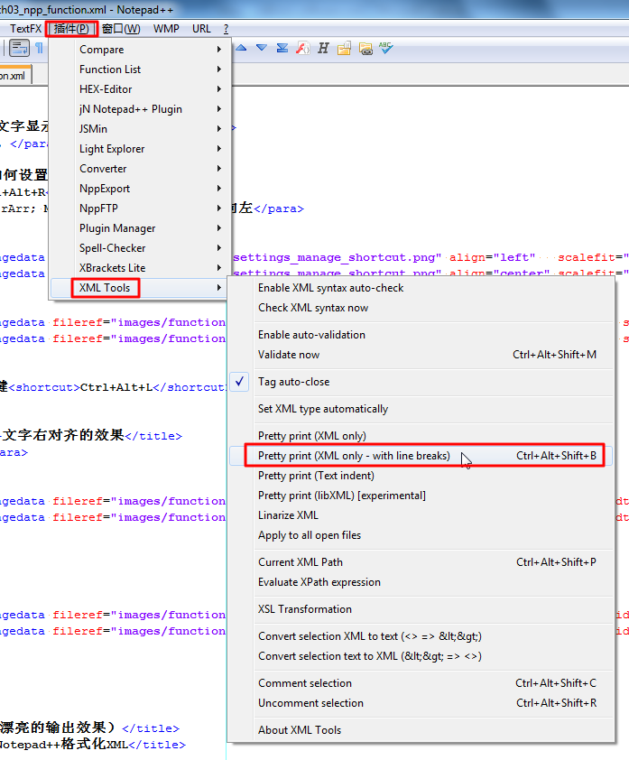 用Notepad++自带的功能,和其他第三方的插件,可以实现,针对不同的格式的文件的格式化,下面依次分别介绍: