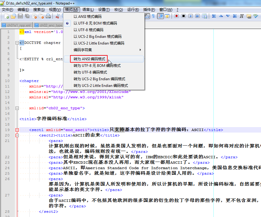 此时,就可以用Notepad++的字符编码转换方面的功能了。