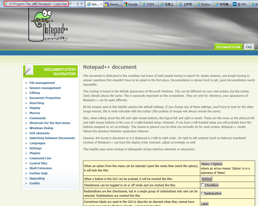 作用是,安装本地的帮助文件。其是网页的形式。Notepad++中通过点击:? → 帮助 Shift+F1: