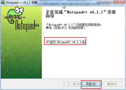 然后点击“完成”,即可启动默认勾选了的Notepad++了。