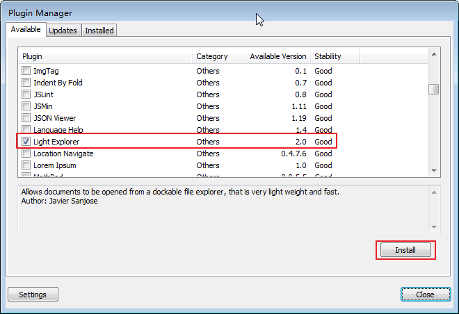 下面以Light Explorer为例,说明如何通过Plugin Manager来安装插件: