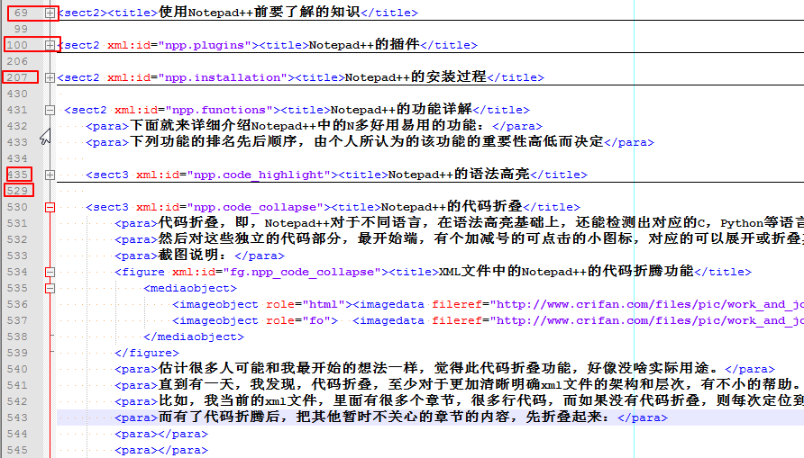 代码折叠,即,Notepad++对于不同语言,在语法高亮基础上,还能检测出对应的C,Python等语言的单个的函数,xml等语言的标签,