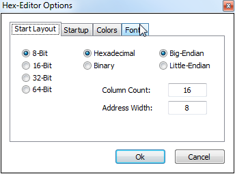 关于更多的选项,比如想要设置其他字体类型和字体大小,可以去上述的HEX-Editor下面的Options中,根据自己的需要设置: