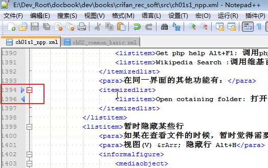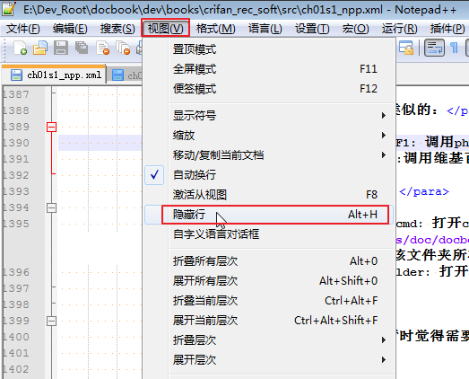 如果在查看文件的时候,暂时觉得需要将某些行隐藏掉,在需要的时候再正常显示,就可以先选中那些行,然后: