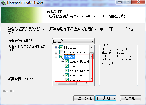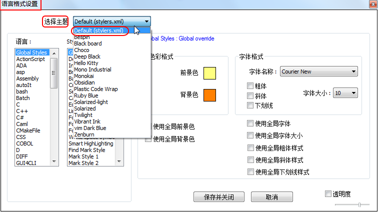 默认已勾选。即Notepad++中,是否支持各种主题。其对应着Notepad++中的:设置(T) → 语言格式设置...,中的“选择主题”: