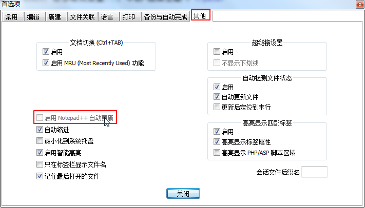 其对应着:设置(T) → 首选项... → 其他,中的“启用Notepad++自动更新”: