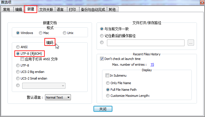 而想要改变新建文件的默认所用字符编码,可以通过: